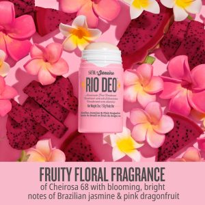 An aluminum-free. baking soda-free deodorant that actually works. Rio Deo eliminates odor. soothes skin. and helps fight ingrown hairs. Our 98% naturally derived formula is now available in the fruity floral scent of Cheirosa 68 with notes of Brazilian jasmine & pink dragonfruit.